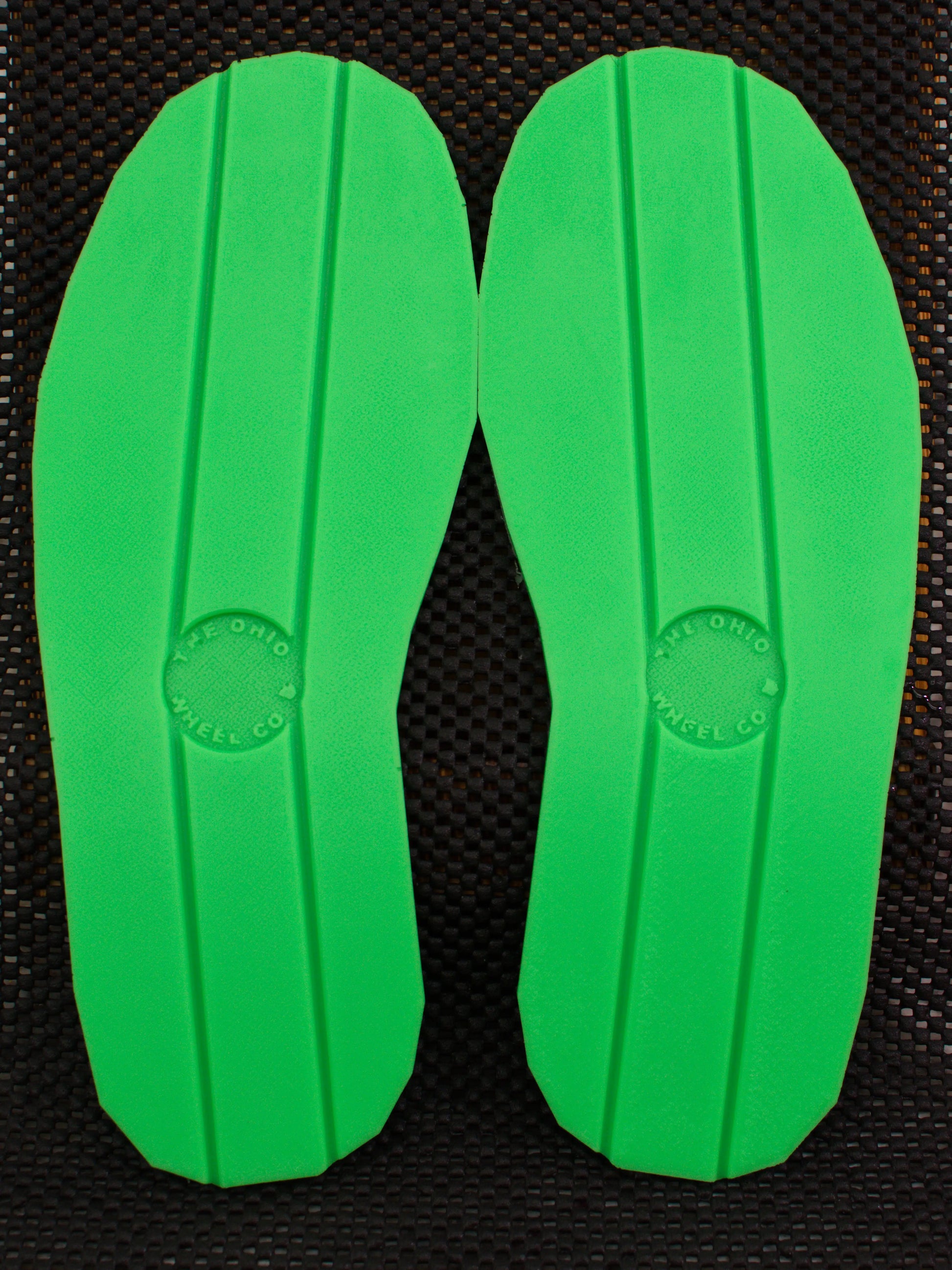 Ohio Wheel Co brake soles are compounded with special additives that cannot be machine-poured like a skateboard wheel. This means that every set of soles is hand-measured, blended, and poured by someone who skates.