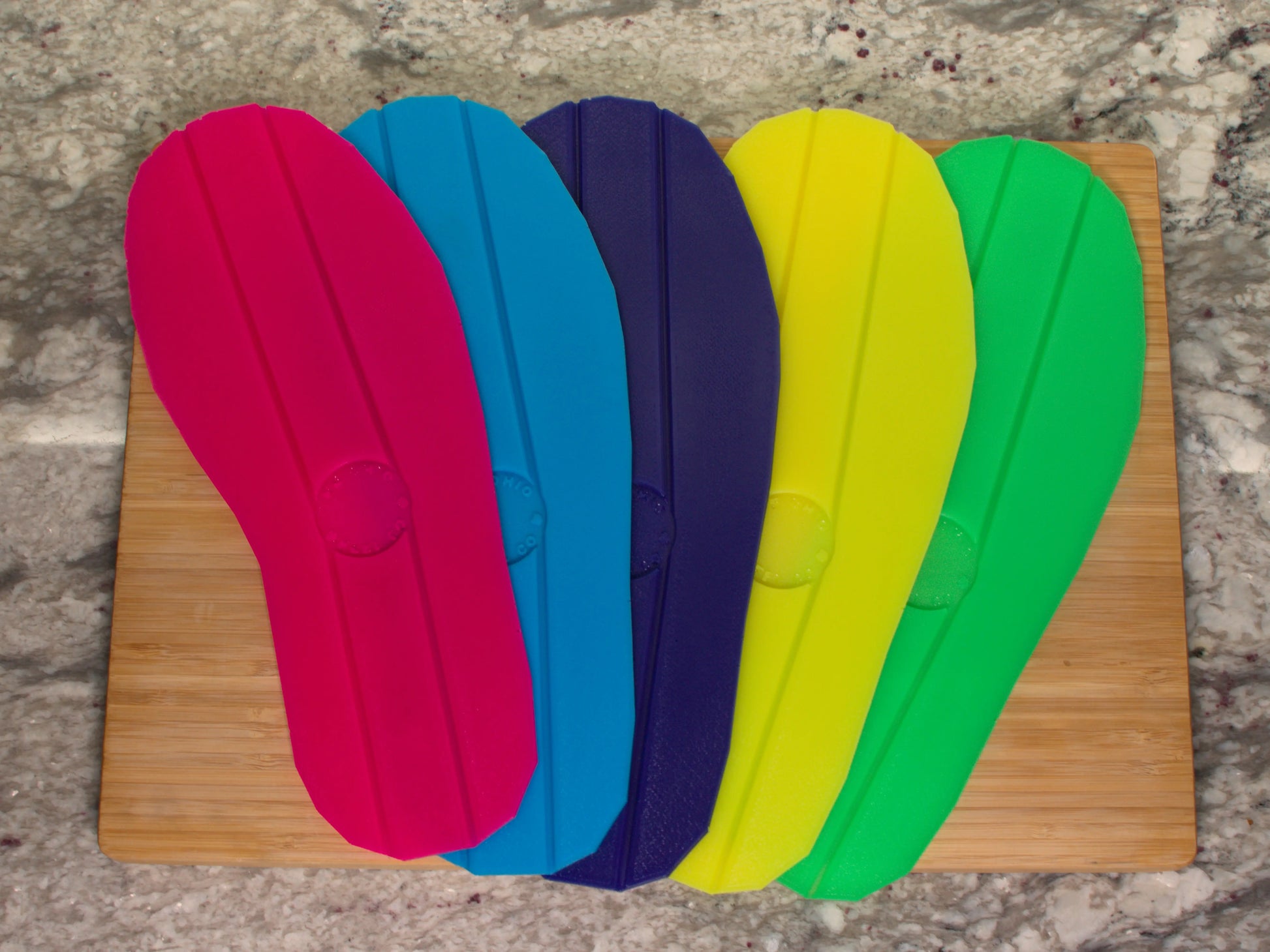 At 5 mm thick, they are flexible, feel good underfoot, preserve 'board feel' and have a locked-in feeling that reminds us of barefoot skating. These are designed with board grip in mind and less for foot-braking.