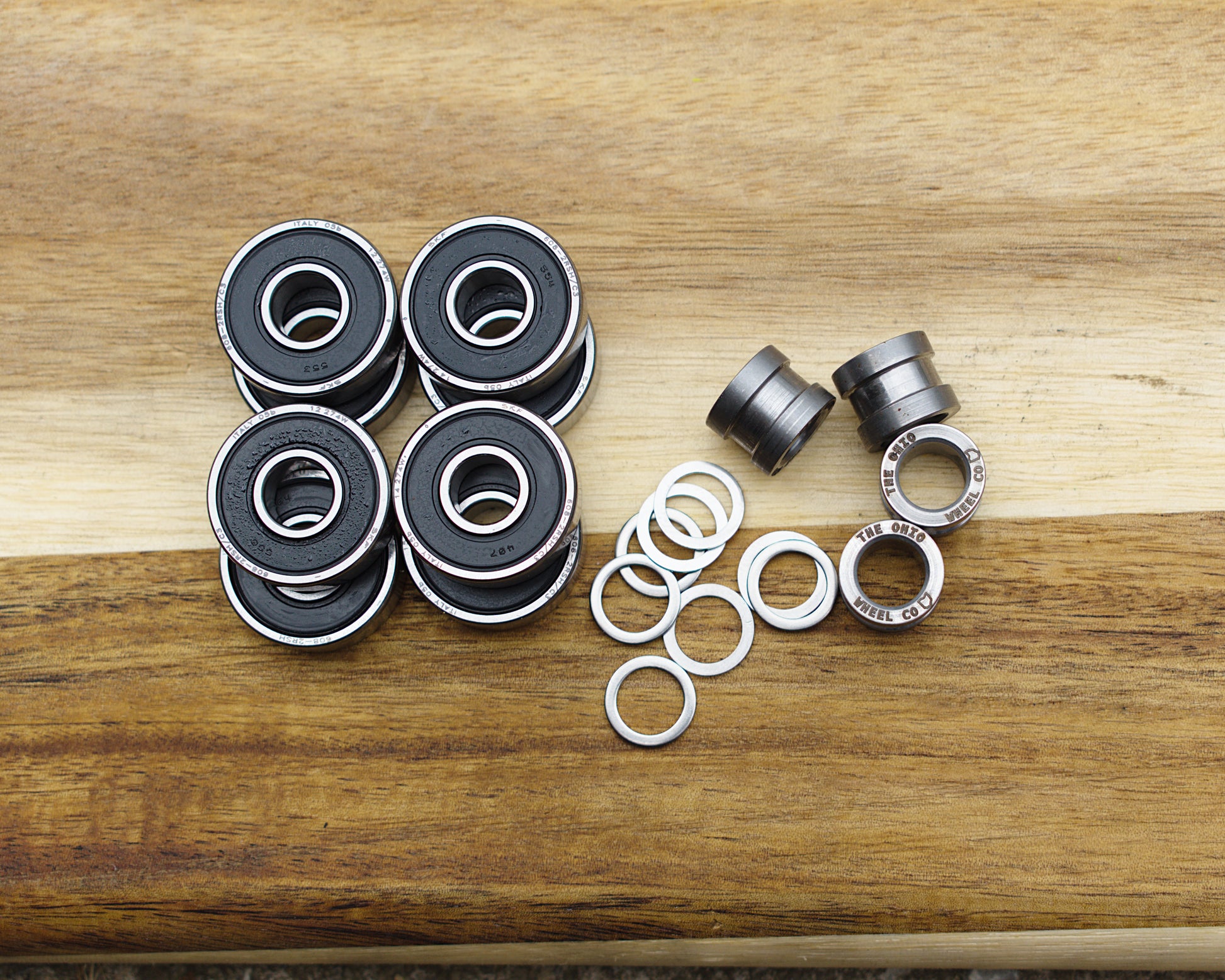 High precision bearings and spacers for downhill skateboarding and street luge.